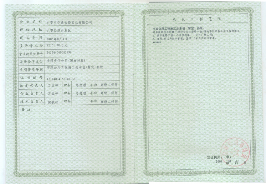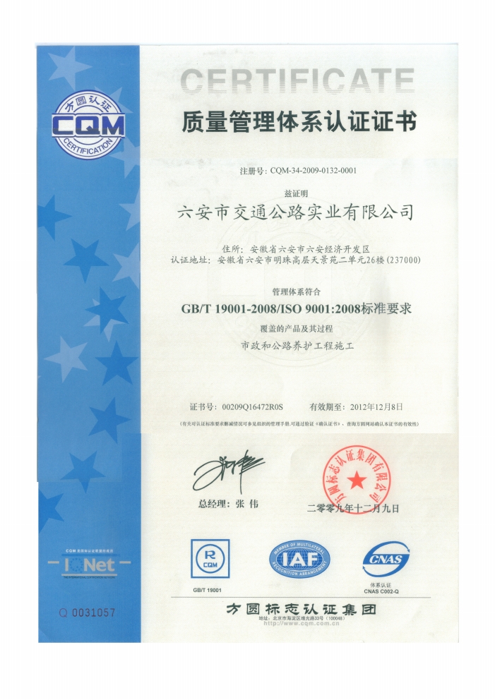 公司取得ISO9001認(rèn)證及市政總承包三級資質(zhì)
